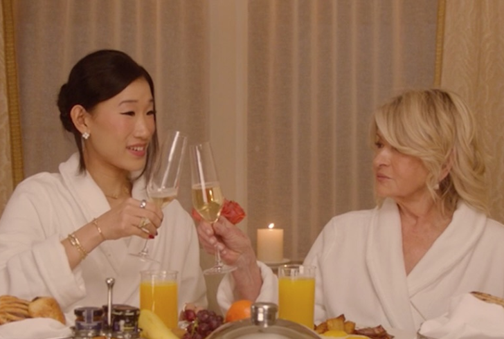 During the video, Stewart opened a tin of caviar while chatting with Bloom and asked a playful question.